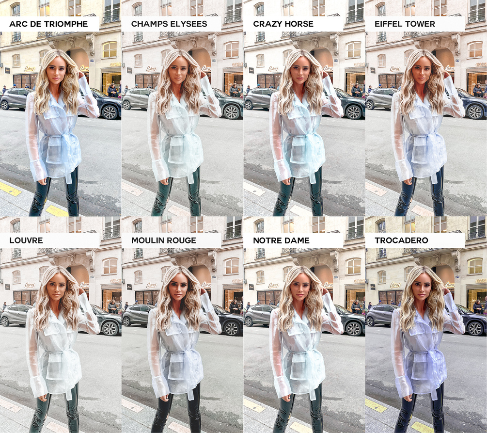 Hi friends! Here are my very own set of 8 presets created during my trip to Paris! You get all 8 for 30 (one time purchase!). :)